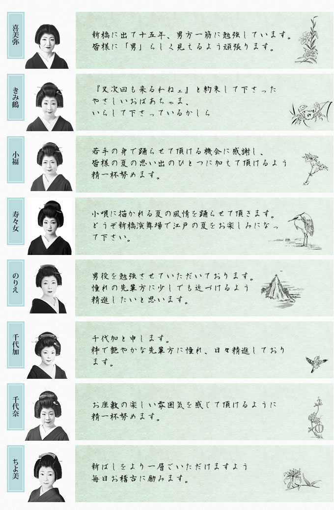 東をどりを終えて夏、ここに起用される若手の芸者衆は